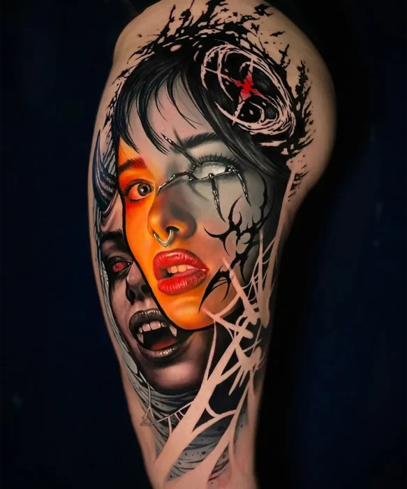 “El arte lo tengo desde chico. Desde los cuatro años dibujo. Siempre fue algo muy personal. Hoy no solo tatúo: dibujo a grafito, pinto al óleo y estudio arte de manera más formal”, comenta. Su estilo nació en el realismo en blanco y negro, pero con el tiempo evolucionó hacia composiciones más complejas que combinan color, técnica pictórica e ilustración.