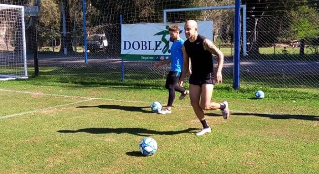 Actitud. Mientras espera que le levanten la sanción, el artillero charrúa, de 40 años, entrena en Loma Verde.