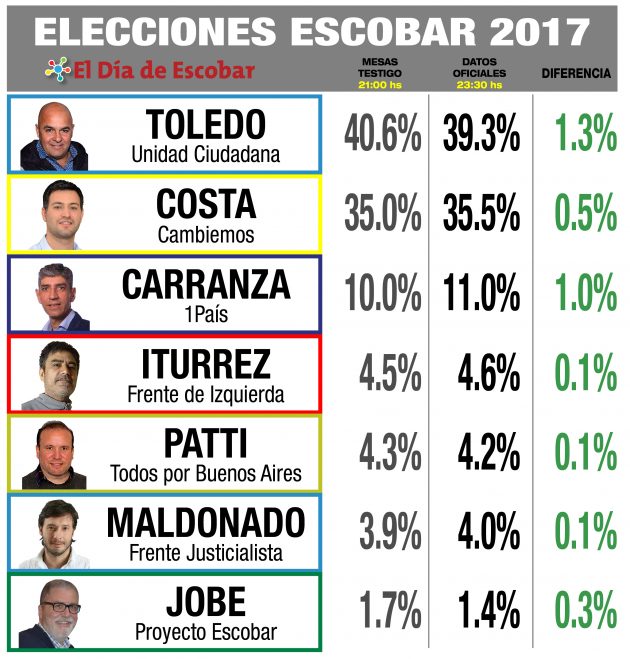 Al igual que en las PASO, este domingo El Día de Escobar volvió a adelantar con notable aproximación el resultado de las elecciones a nivel local, varias horas antes de que se conozcan los cómputos oficiales definitivos.