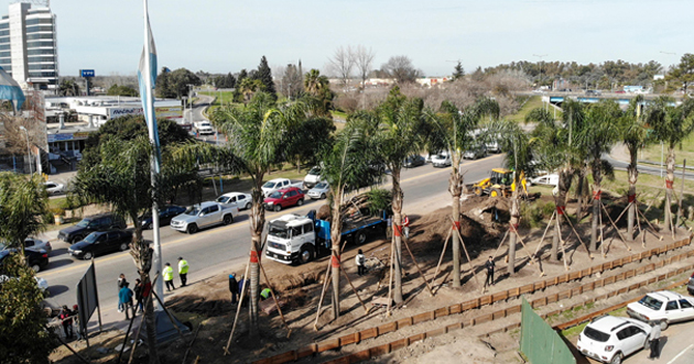 Las palmeras plantadas a un costado de la ruta 25 son el cambio más notorio. También tendrá esculturas florales y un sistema de iluminación ornamental. Además, se colocaron nuevas baldosas en la dársena de colectivos.